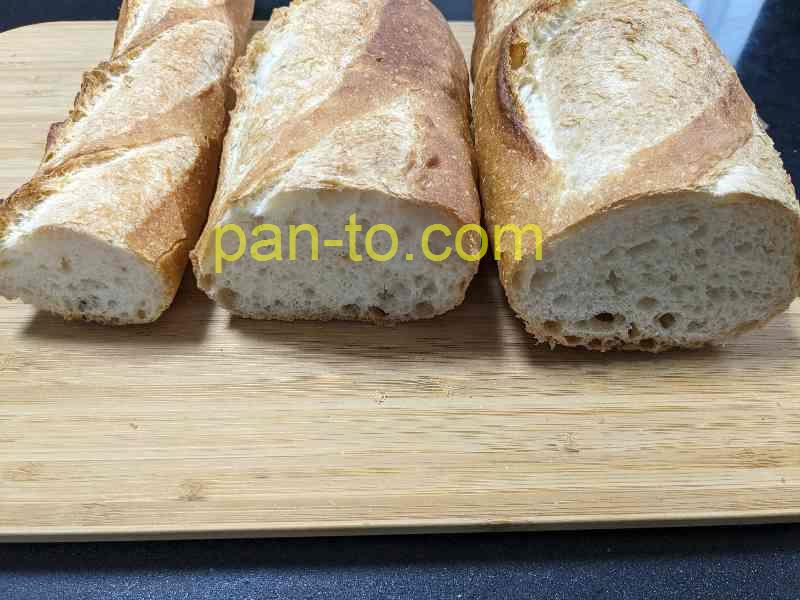 日本人が思い浮かべるフランスパンは、実際には大きく3種類あると思います。バケット、パリジャン、バタールです。3種類は何が違うのかというと、長さと太さ、それに伴って生まれるクラムの触感です。クラムがカラカラに焼きあがるのはバケットで、細いため中の水分がすべて飛ぶからだと思われます。太くなるにつれ、しっとりとした感じが出てきます。