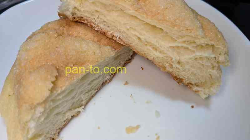 ケルンのメロンパンの触感は、しっとりとしたクッキー生地がとサクサクのクロワッサン生地が特徴的です。